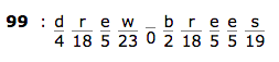 Gematria originated as an ancient Assyro-Babylonian-Greek system of alphanumeric code or cipher that was later adopted into Jewish culture. Now, here shows something interesting: When decoded in Simple Gematria, the name Drew Brees equals 99.